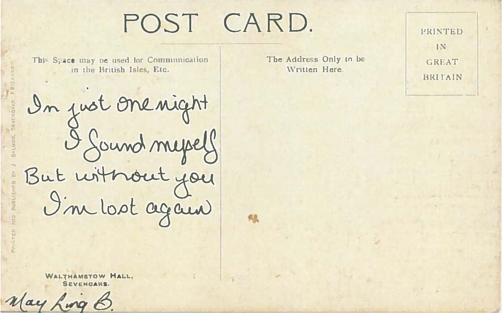 Post Card Series Post Card Series 7 June 9, 2014 May Ling B Leave a comment In just one night I found myself But without you I'm lost again Spread the word: Click to email a link to a friend (Opens in new window) Email Click to share on Facebook (Opens in new window) Facebook Click to share on X (Opens in new window) X Click to print (Opens in new window) Print Like Loading...